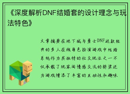 《深度解析DNF结婚套的设计理念与玩法特色》