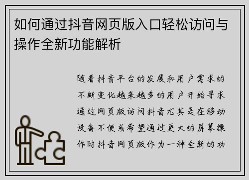 如何通过抖音网页版入口轻松访问与操作全新功能解析